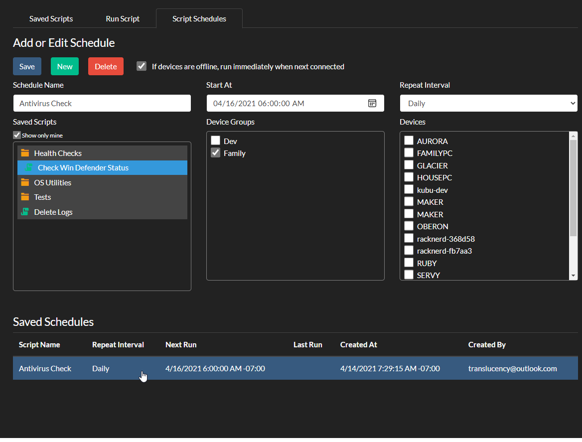 设置脚本以按每小时、每天、每周或每月计划运行。 (可选)向您的电子邮件发送警报和/或远程 Web 界面。